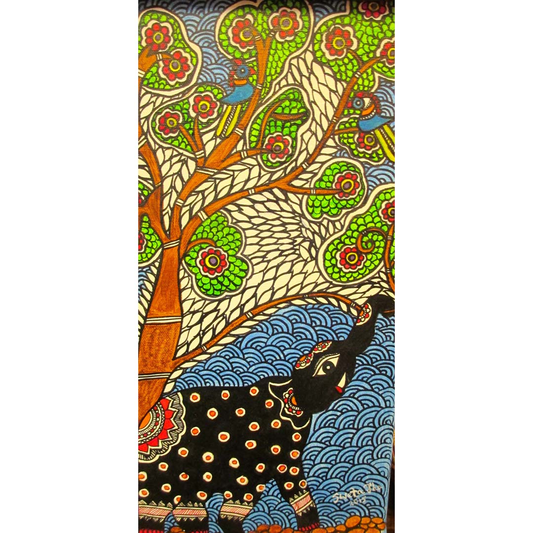 “Appuraja” depicts a happy baby elephant relishing the beauty of nature in its on way.